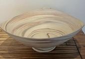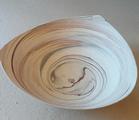 Elegant fine porcelain bowl in marbleised clays with integral grey and red spirals with raised rim to 3 points